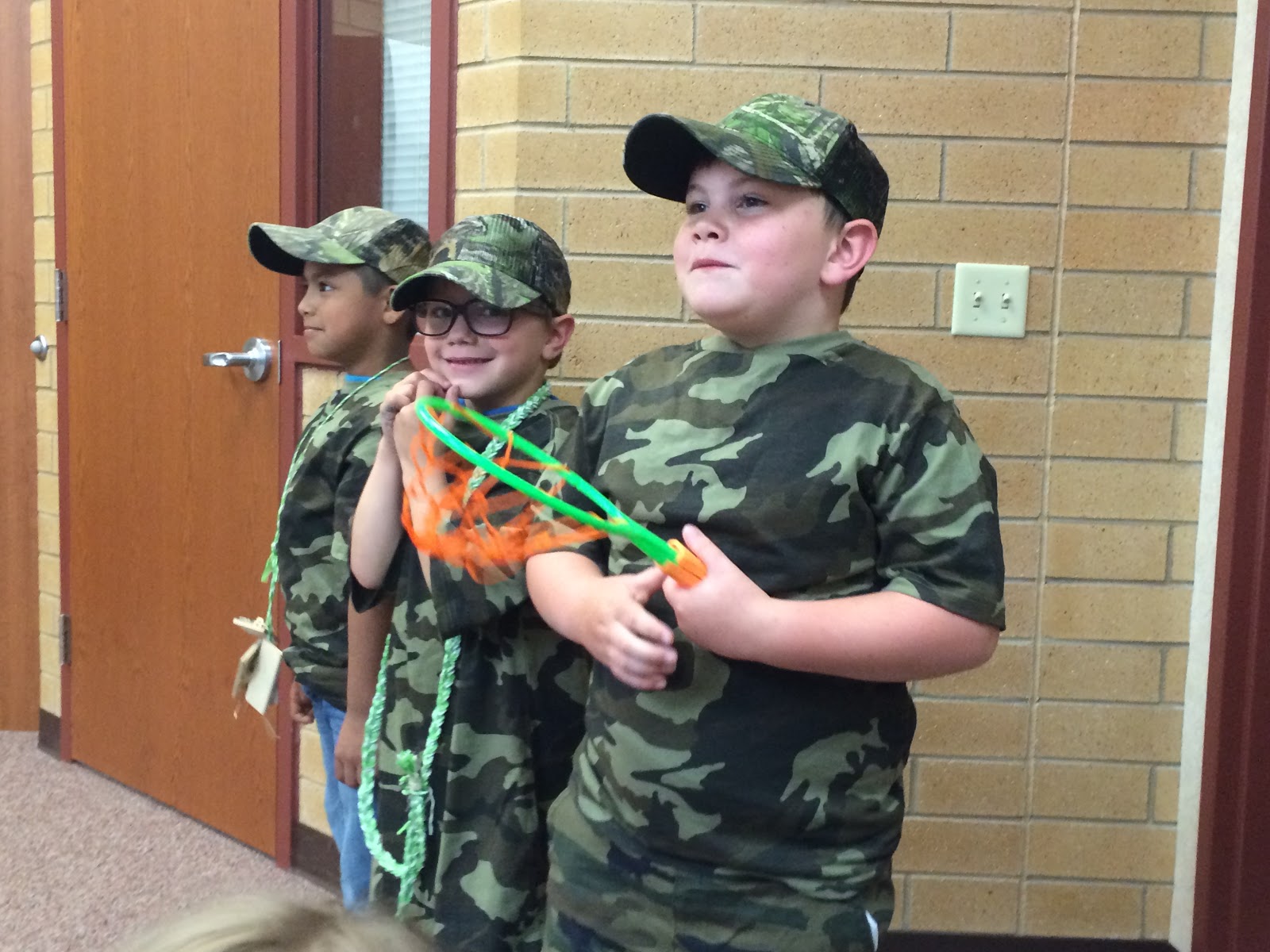 On Wednesday, I went to the Elementary school to see Ben perform in his kindergarten play. He was a hunter being out-witted by penguins. He said that it was so great because he got to be a hunter with his two best friends from school, Walker and Eduard. They sure were cute hunters!